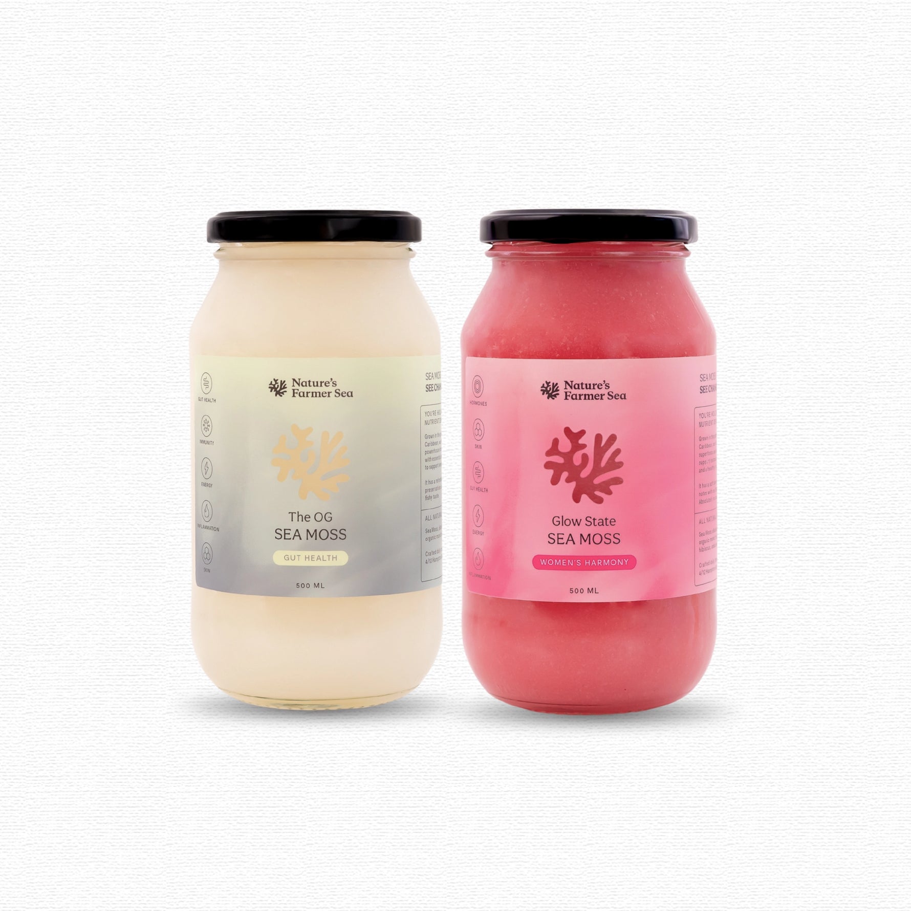 Our Essential Glow Duo brings together our community’s most-loved blends — The OG, our clean and simple everyday Sea Moss gel, and Glow State, the glow-forward ritual designed to support inner balance and radiance.